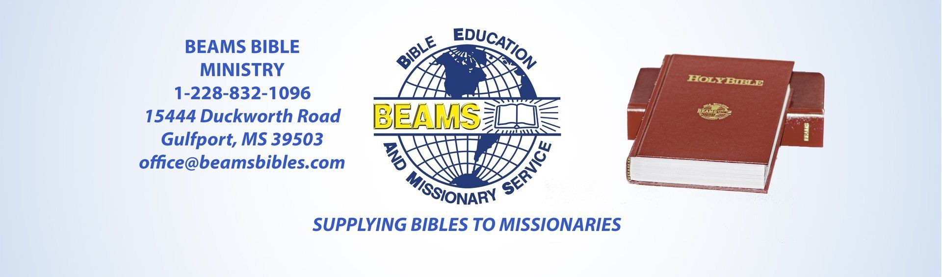 The ministry of BEAMS is a local church ministry under Faith Baptist Church, Gulfport, Mississippi, where Dr. Dan Carr, Sr. is pastor. We are sent out as full time missionaries by this church. All of our support comes from churches and love offerings given by the churches where we share the ministry.